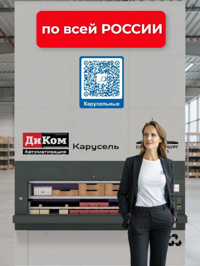 Элеваторные стеллажи ДиКом-Карусель, поставляемые АО «Компания инноваций и технологий», — это надёжное российское решение для автоматизации хранения и учёта мелких товаров.