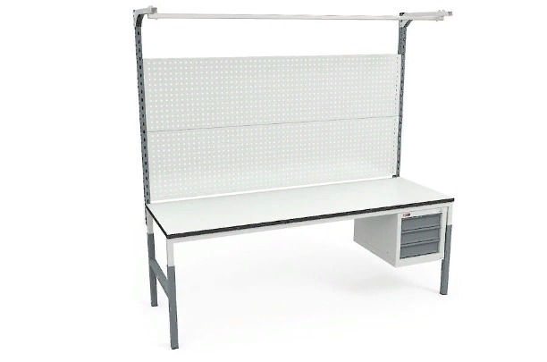 Регулируемый рабочий стол ДиКом СР-М-200-04 с перфорированным экраном, консолью и коробом для коммуникаций предназначен для слесарных и электромонтажных работ на производстве. Монтажный стол отличается выгодной ценой, функциональностью и надежностью.