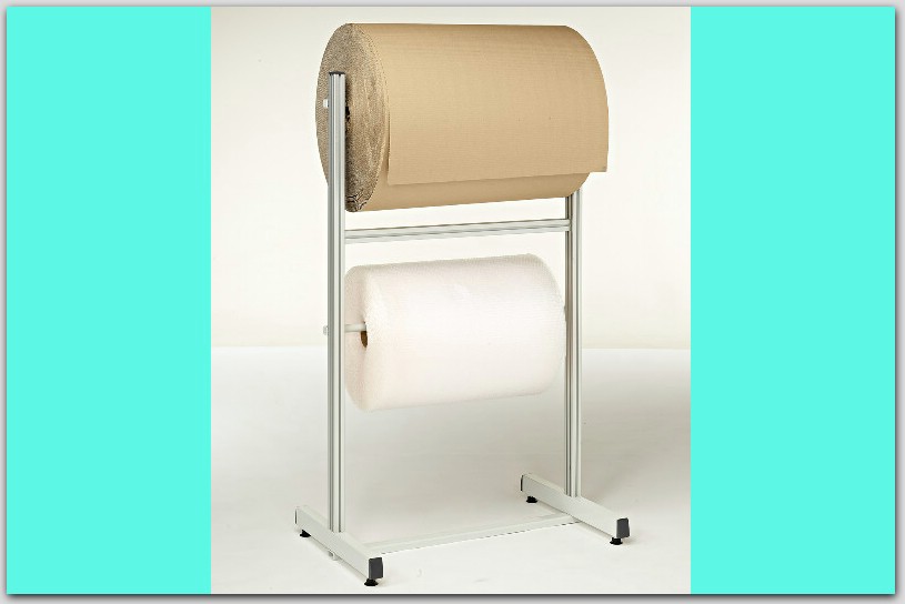 На этом держателе бумажных рулонов можно разместить два рулона, один над другим, он очень удобен для хранения упаковочного материала рядом с рабочим местом упаковочного стола.
