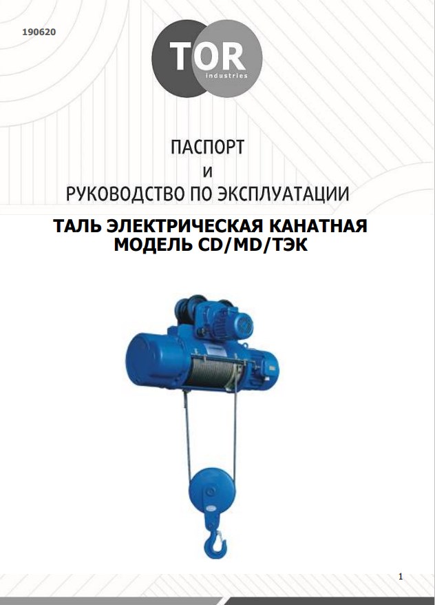 Завод TOR производит электрические тали с различными вариантами грузоподъемности: 0,5, 1, 2, 3, 5, 10, 16, 20 тонн. Каждая из этих талей подразделяется на три стандартизованных модели: 6, 9 и 12 метров, а также модели с очень большой высотой подъема: 18, 24, 30, 36 метров и выше. Все эти тали разработаны в соответствии с требованиями промежуточного режима работы.
