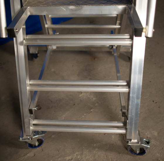 - Большая рабочая площадка 700х500 мм с перилами и коленной планкой обеспечивает максимум безопасности и удобства при работе.
