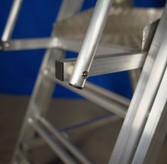 - Замок площадки предотвращает самопроизвольное сложение лестницы.
