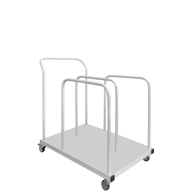 Все элементы окрашены эпоксидно-порошковым покрытием RAL 7035, а так же представлены дополнительно в двух цветах на выбор. Распределенная нагрузка на тележку до 120 кг.