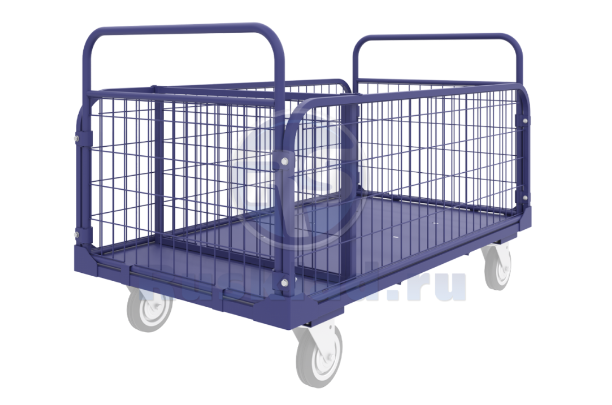 Металлическая платформенная тележка RUSKLAD ТС П 800х1400 с быстро-складываемыми бортами (без ключей) и перегородкой для комплектации заказов и транспортировки небольших грузов в магазине, на складе или производстве.