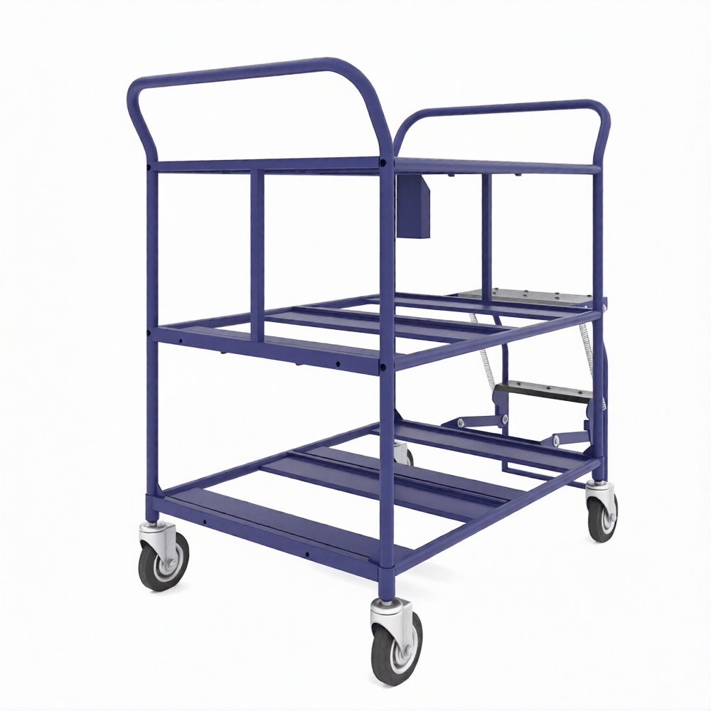 Трехъярусная платформенная тележка ТДЯ (660×1055×950 мм) предназначена для эффективного перемещения ящиков и других несыпучих материалов на складах, промышленных предприятиях, в оптовой и розничной торговле.
