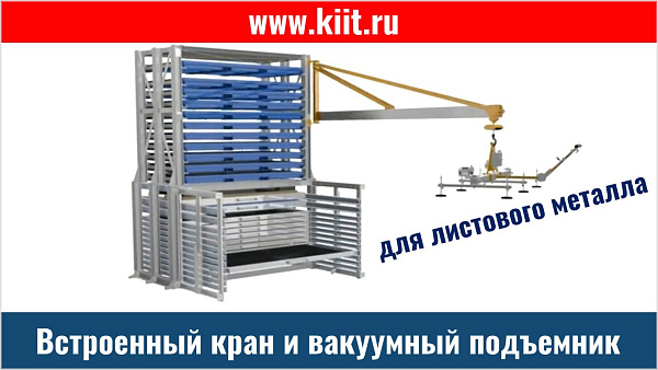 Встроенный поворотный кран с вакуумным подъемником значительно облегчает процесс работы с разными по габариту металлическими листами, делает работу на складе и производстве эффективной и безопасной.