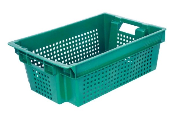 Ящик п/э 600х400х200 дно сплошн. стенки перф. зеленый, вес 1,5 кг