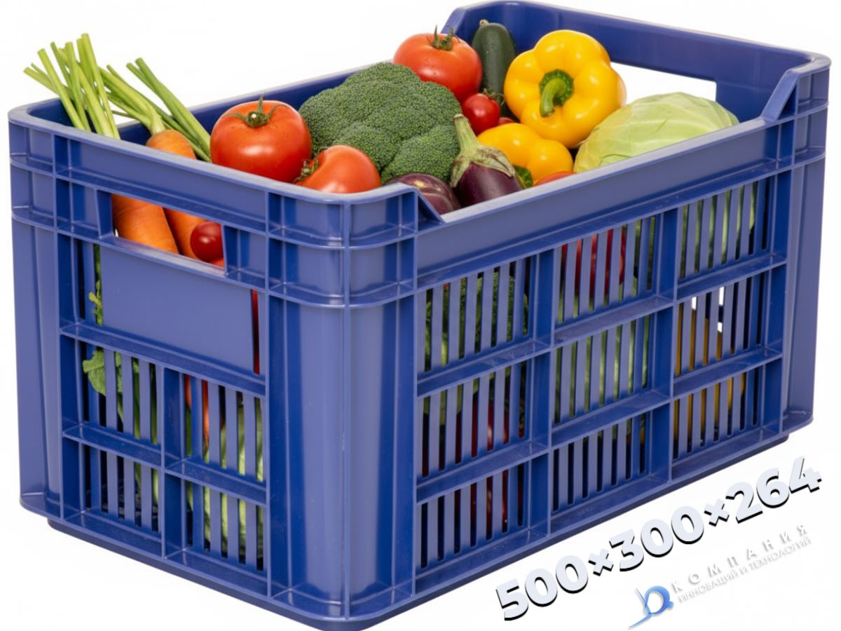 Универсальный дизайн: стандартные размеры 500×300×264 мм позволяют использовать наши ящики на любых стеллажах или в грузовых автомобилях.