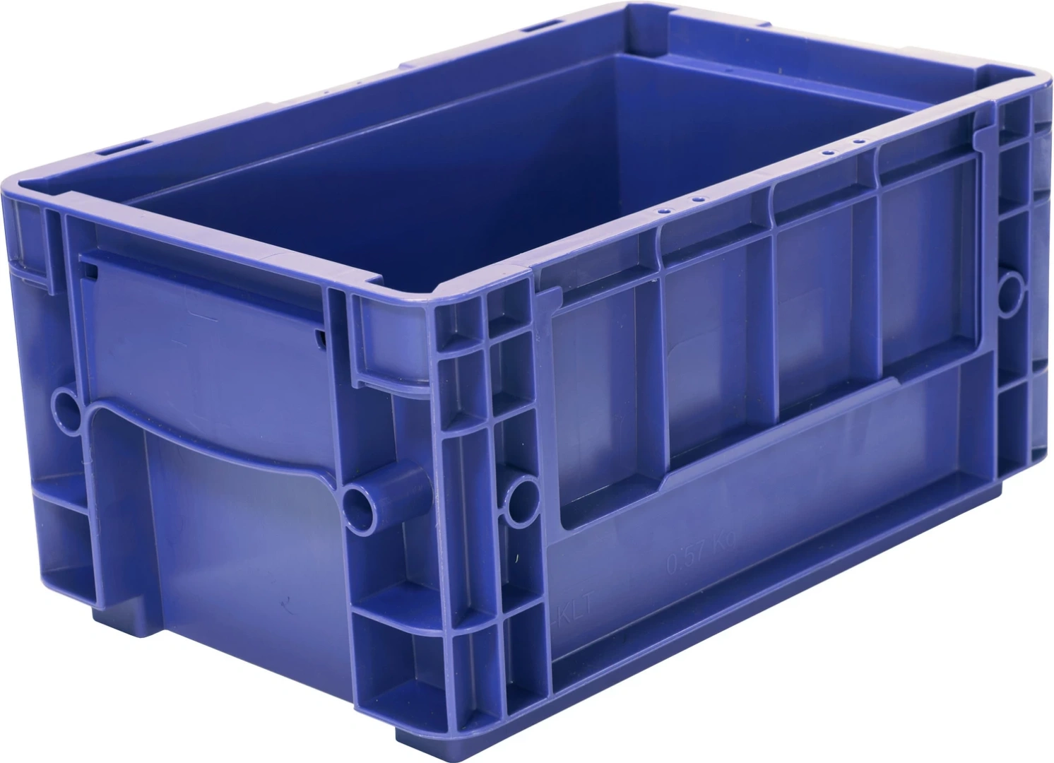 Модель R-KLT синего цвета имеет сплошное рифленое дно и стенки и применяется для мелких деталей.Модель RL-KLT выполнена в голубом цвете имеет сплошные стенки и дно с отверстиями и применяется для деталей среднего и более крупного размера.
